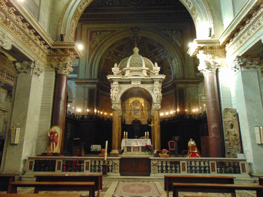 Intricati motivi sul pavimento cosmatesco, colonne di reimpiego, dipinti murali alle pareti e una precedente chiesa sotterranea accessibile scendendo qualche…