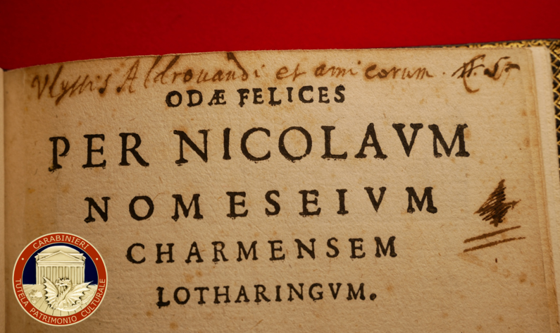I Carabinieri del Nucleo TPC di Torino restituiscono alla Biblioteca Comunale dell’Archiginnasio di Bologna l’unico esemplare conosciuto in Italia di un rarissimo opuscolo Cinquecentesco